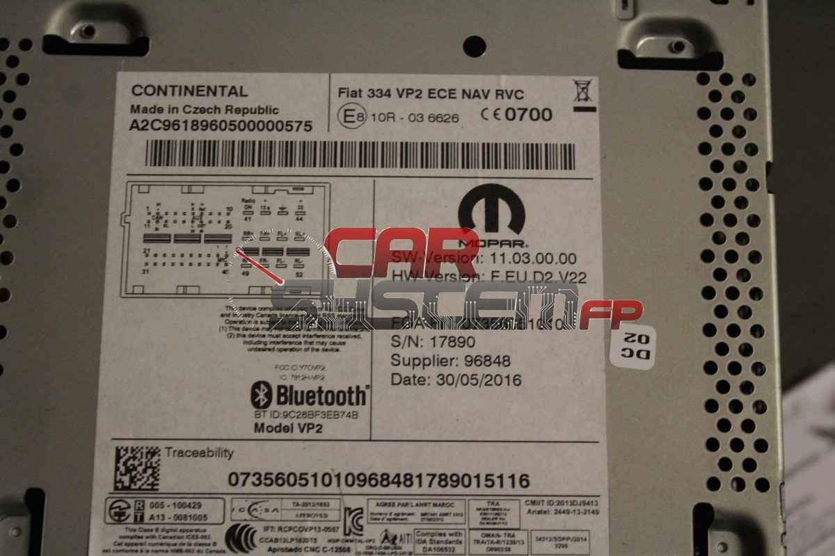 Navigatore FIAT 500 500X Uconnect FIAT 334 VP2 ECE NAV RVC CONTINENTAL 07356051010 A2C9618960500000575
