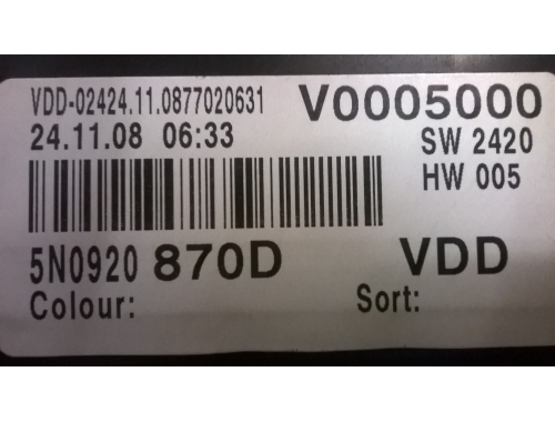 | Codici di riferimento | 5N0920870D V0005000 SW2420 HW005 VDD |